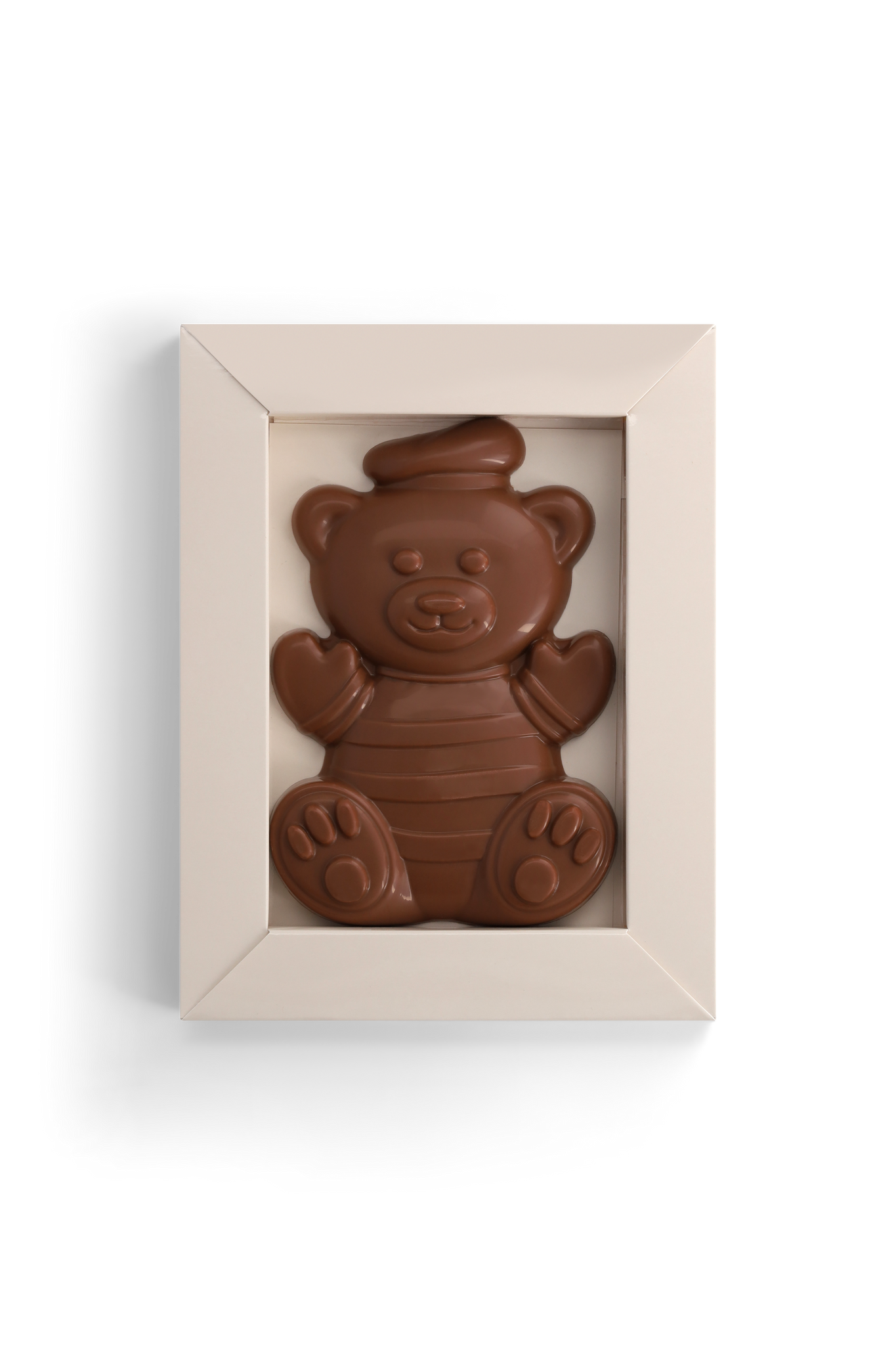 Der Bär hat ein liebenswertes Aussehen und möchte am liebsten im Mund des Schokoladenliebhabers liegen.